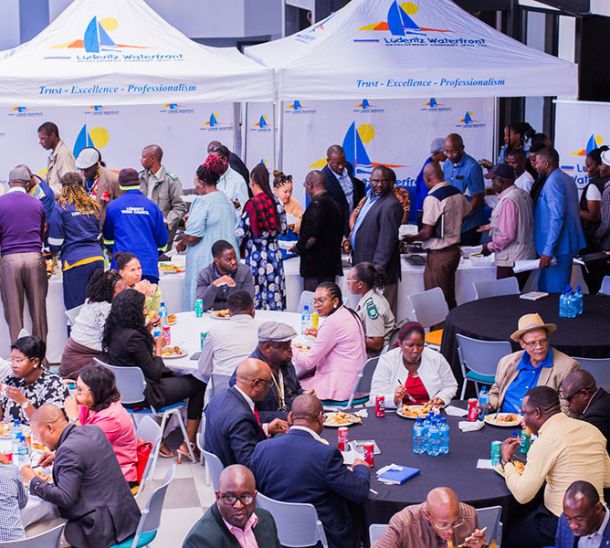 The Lüderitz Waterfront continues to attract senior government officials to its premises. On 06 March 2026, Lieutenant General (rtd) Denga Ndaitwah, the First Gentleman of the Republic of Namibia, visited the Lüderitz Waterfront during his two-day working visit to Lüderitz, hosted by the Lüderitz Waterfront Development Company (LWDC).